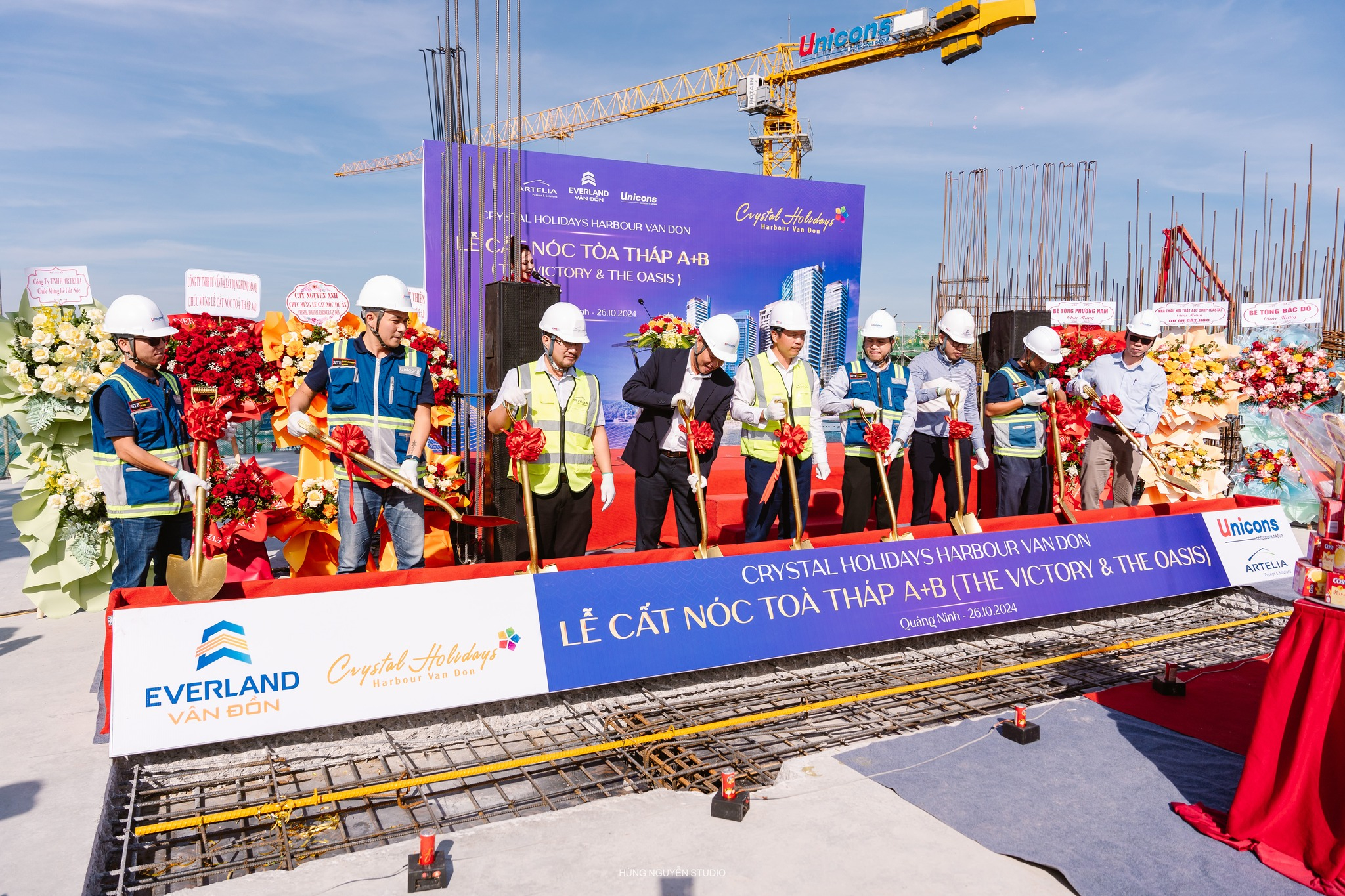 Amidst the vibrant development of Van Don's tourism sector, the Crystal Holidays Harbour Van Don project has made significant progress, officially topping out its two towers, The Victory (A) and The Oasis (B), on October 26, 2024. This milestone sets the stage for the project's operational launch in the third quarter of 2025.​
