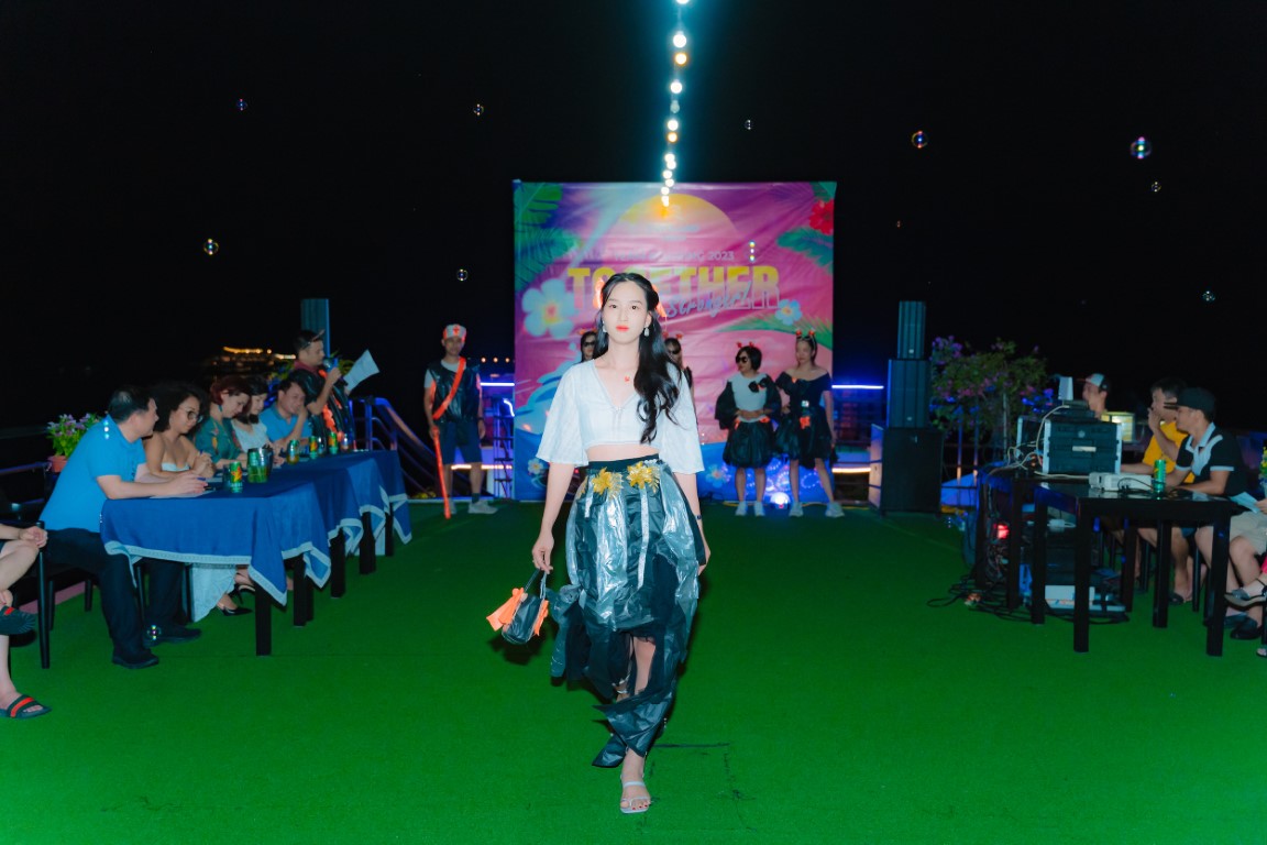 Những mặt biển xanh biếc, hơi thở trong lành của biển cả dường như đang lên tiếng cầu cứu hàng ngày, hàng giờ. Lấy cảm hứng từ việc bảo vệ môi trường biển Bộ sưu tập “Save the Ocean” của đội Cam thể hiện tinh thần vì một đại dương tốt đẹp hơn. Nhắm đến những giá trị bền vững, hướng về tương lai, môi trường. Với chất liệu được làm từ túi rác tự phân huỷ được cách điệu theo các đường cắt phóng khoáng, tươi mới, thời trang truyền tải vẻ đẹp sự huyền bí của biển sâu, cũng như có ý nghĩa luôn mang tính thời đại và sâu sắc về tuyên truyền ý thức bảo vệ môi trường biển.