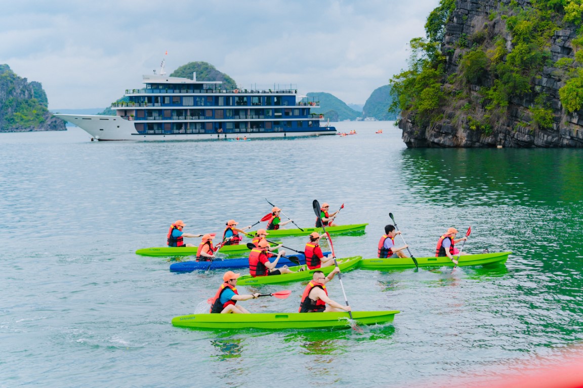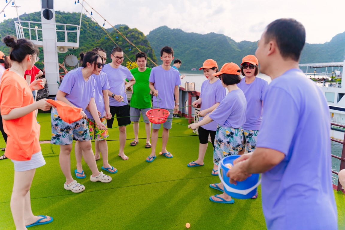 Cuộc thi chèo thuyền Kayak, hay các trò chơi tập thể diễn ra trên sundeck lộng gió như hứng bóng, chuyền vòng khéo léo… đã nhanh chóng kéo mọi người lại với nhau.
