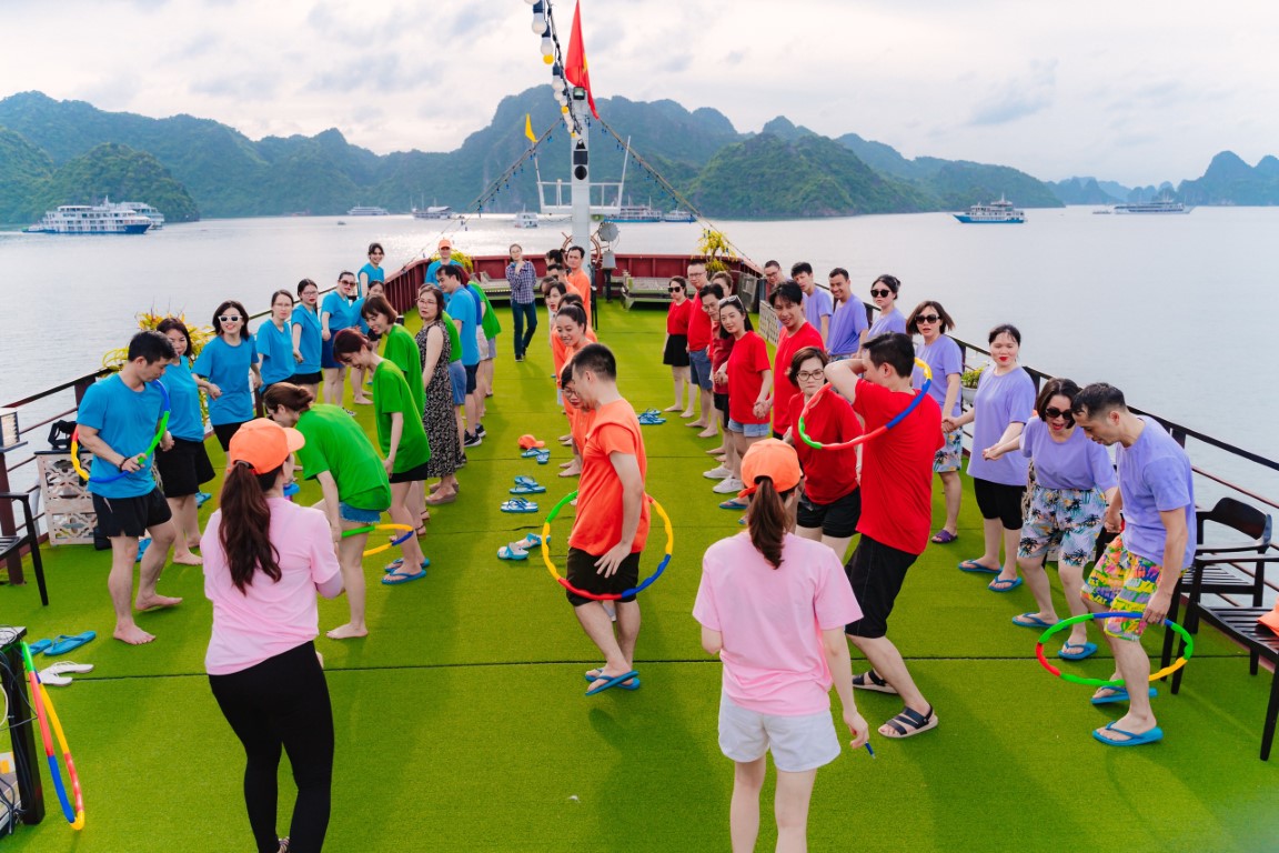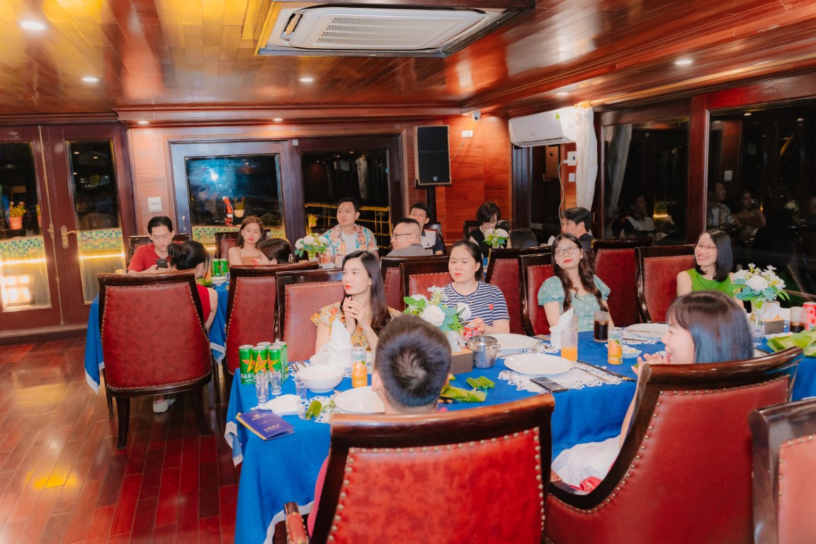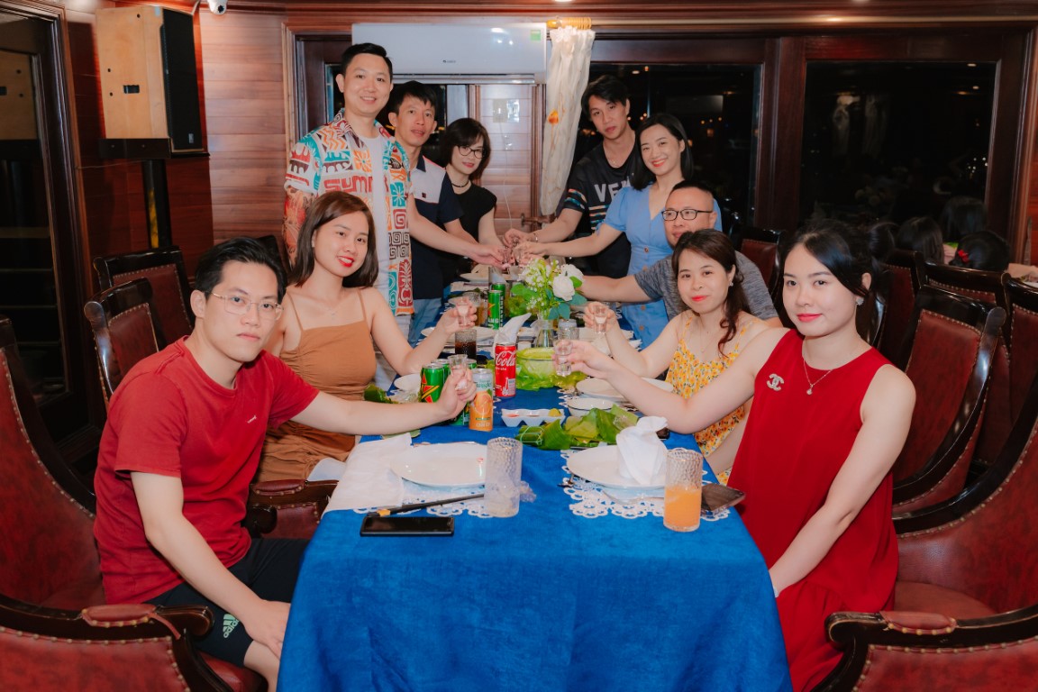 Kết thúc buổi chiều với các trò chơi gay cấn, đêm hội Gala Dinner với 2 phần: Tiệc tối và công bố trao giải team building, tiệc đứng “Night Party” trên du thuyền là điểm nhấn sôi động trước khi khép lại chương trình team building.